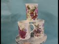 Description set of 3 bone china mugs dishwasher safe 10.5 cm high 7.5 cm wide at the rim capacity 280 ml or 1/2 pint